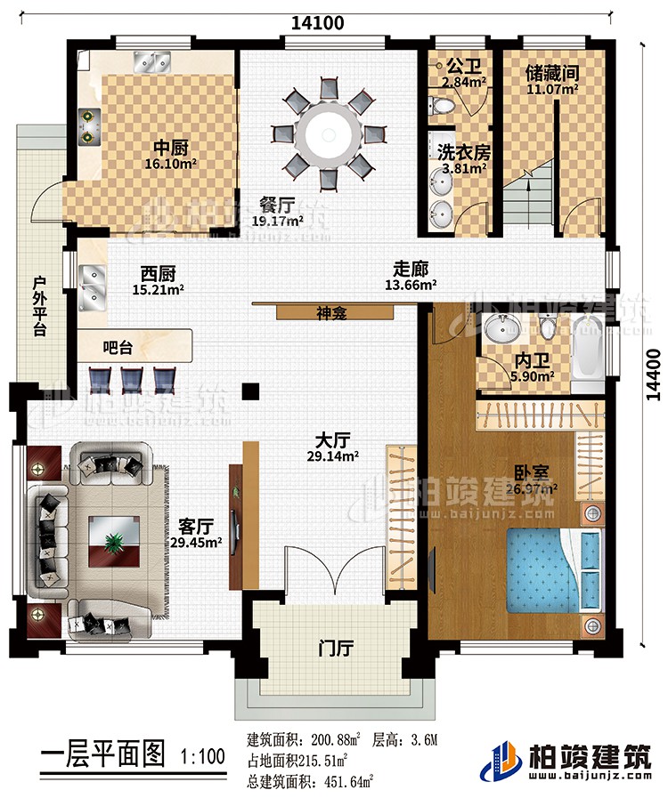 [开间]:14.10m   [占地面积]:215.51 [建筑面积]:451.64